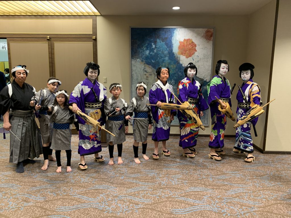 普段とは違う雰囲気の中、歌舞伎の化粧と華やかな衣装をまとい、子どもたちは堂々と演技披露をし、たくさんの拍手と大向こう(声かけ)をいただきました。