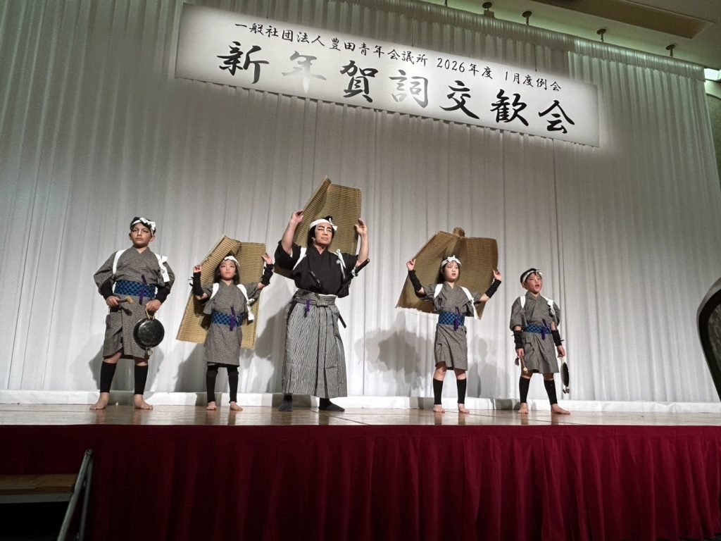 1/12(月祝)に名鉄トヨタホテルで行われた豊田青年会議所の新年賀詞交歓会にて、小原歌舞伎保存会がアトラクションとして「こども歌舞伎 白浪五人男」を披露しました。