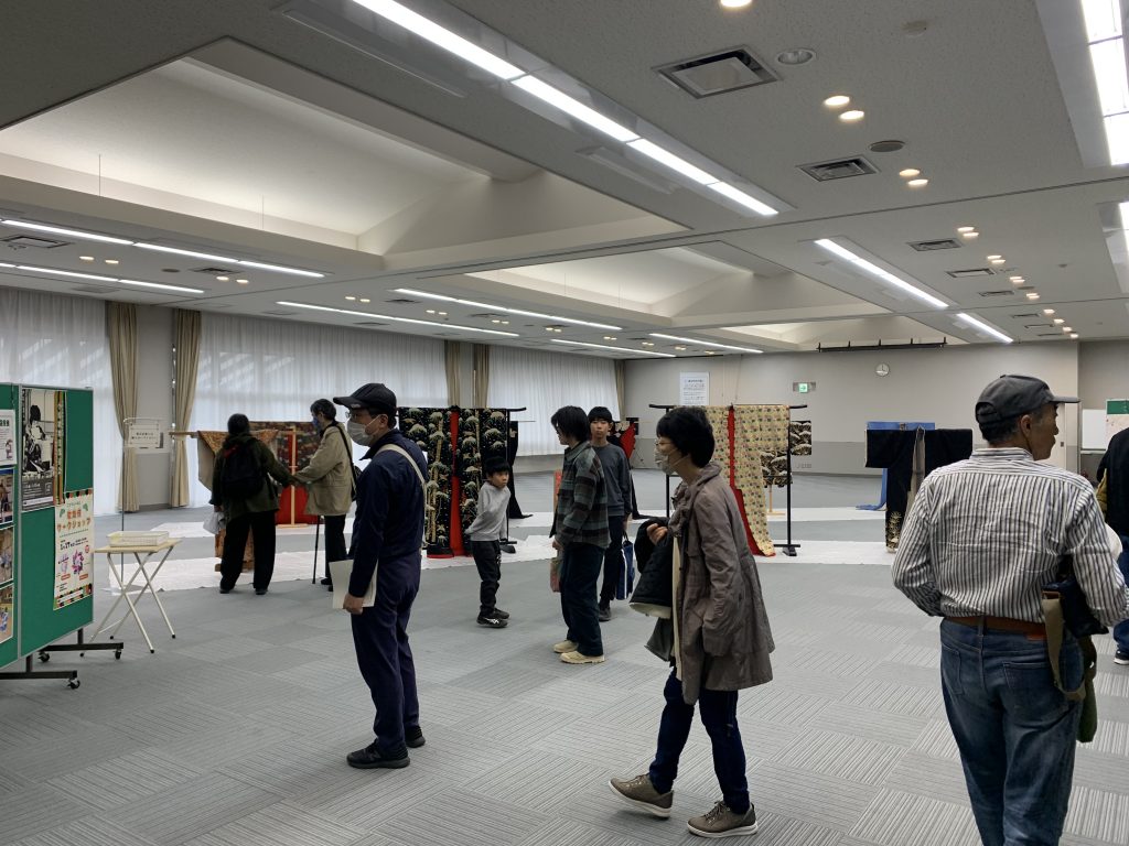 細やかな刺繍が施してある豪華な衣装展示をふれあいほーるで行いました。